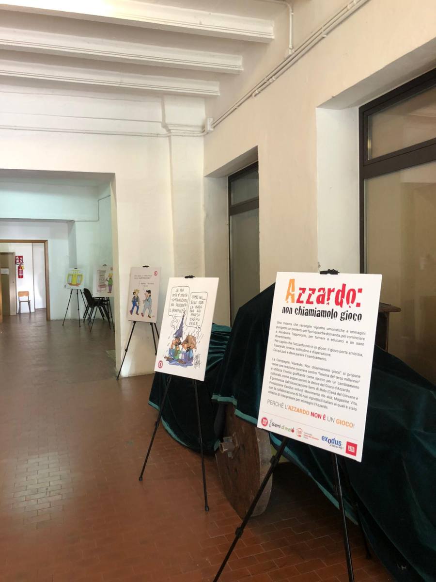 La mostra, composta da 35 pannelli, è stata posizionata in più punti della città per una maggiore visibilità, ci sono pannelli nelle due chiese del centro storico, nell’atrio della biblioteca comunale e della Fabbrica, nel centro anziani, in un plesso scolastico, in uno studio medico ed in una pasticceria. Questo primo intervento di sensibilizzazione vedrà protagonista anche il teatro civile di Itineraria Teatro che venerdì 13 presenterà al Teatro Torquis lo spettacolo Gran Casinò, e sabato 14, solo per le scuole, lo spettacolo “Stupefatto”.